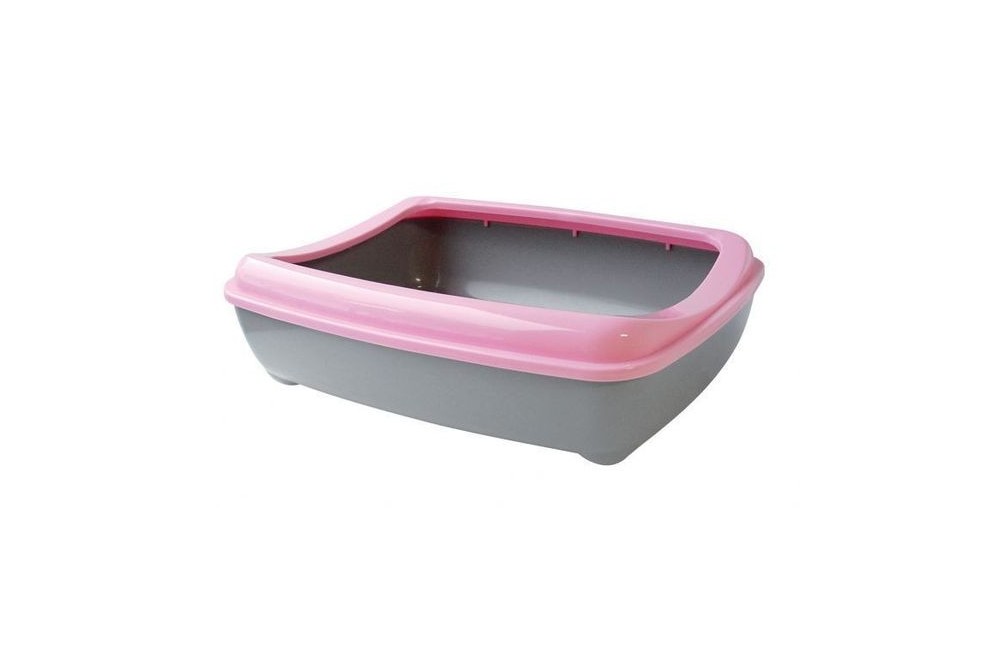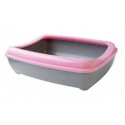 Bac à litière avec rebord amovible de dimension 43x32x12 cm, entretien facile, couleur gris-rose
