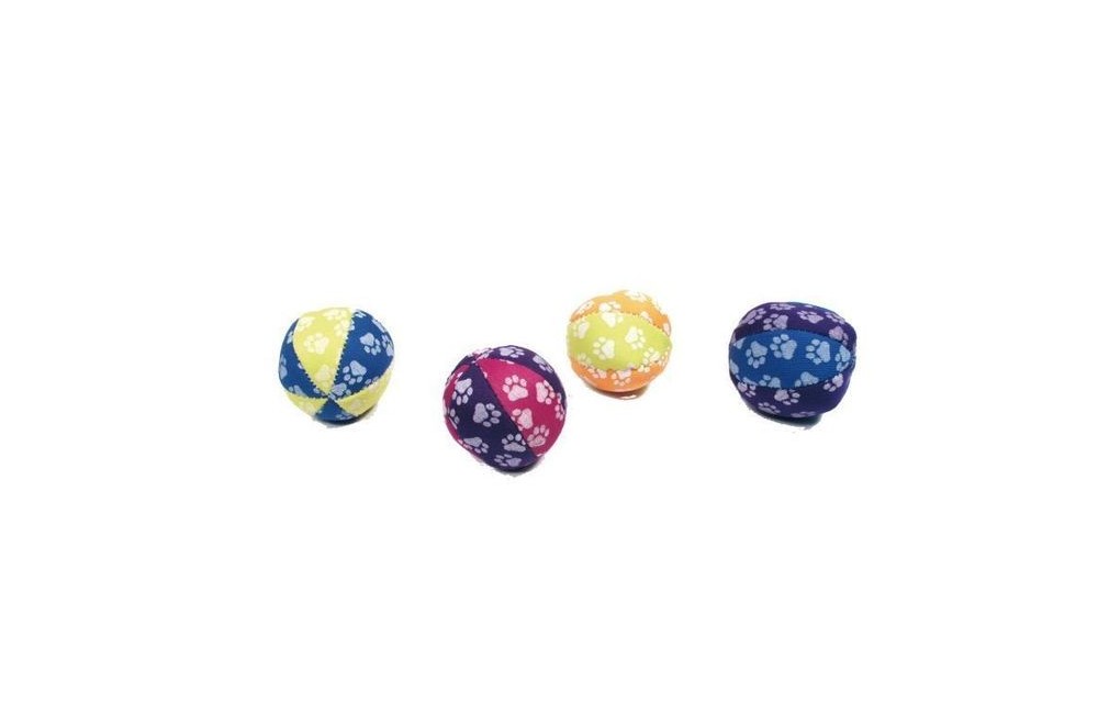 Balles en lot de 2, munies de petits motifs en forme de pattes phosphorescents, silencieuses, remplies d'herbe à chat de diamètre compris entre 4,5 à 5 cm