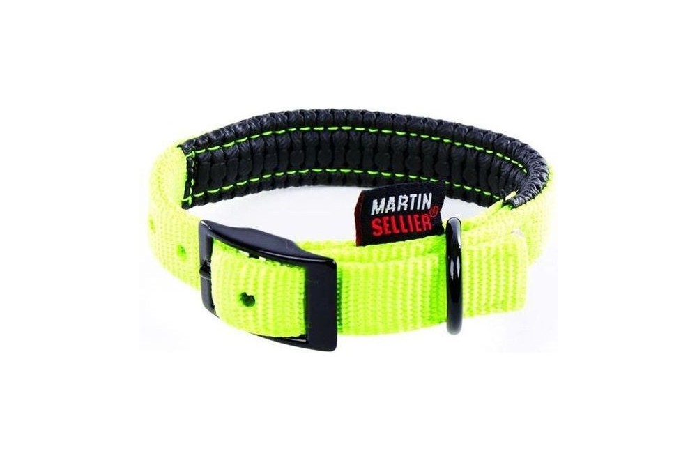 Collier de 2,5 cm de largeur et 65 cm de longeur, robuste en nylon rembourré de mousse douce pour un ajustement confortable. Les éléments du collier vert sont en plastique robuste et ont une couche de laque noire. Egalement, équipé d'une protection anti-traction