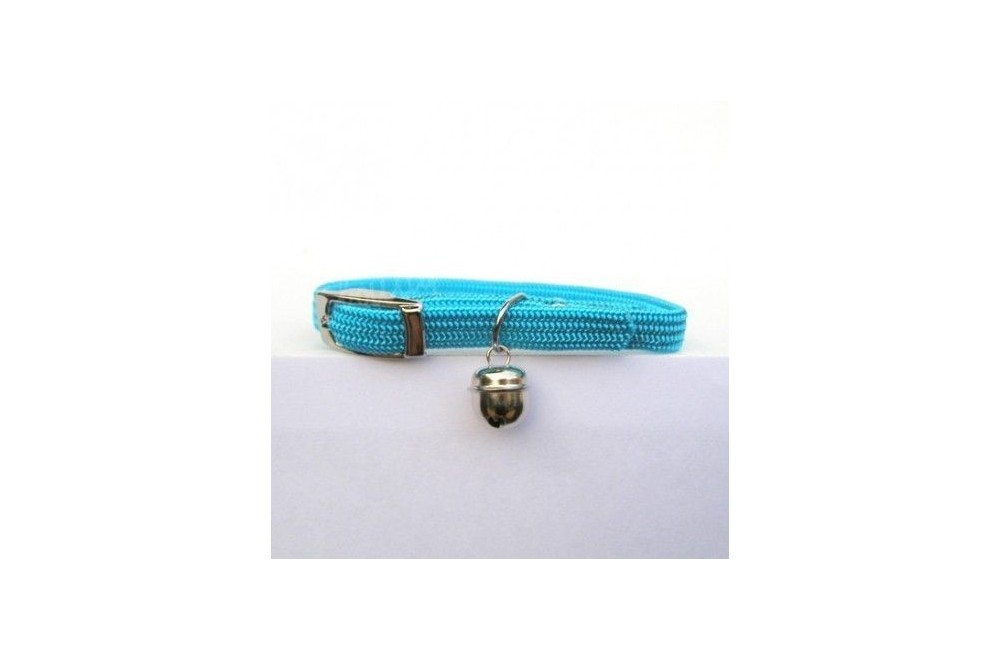 Collier en nylon tubulaire élastiqué, réglable, fourni avec 1 grelot, de largeur 1 cm pour une longeur de 30 cm