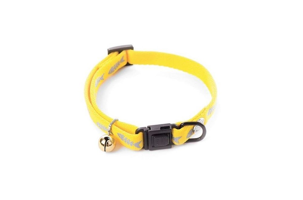 Collier en nylon réglable et réfléchissant avec motifs arêtes de poissons, boucle de sécurité anti-étranglement, dimensions de 20 à 30 cm de longeur et 1 cm de largeur