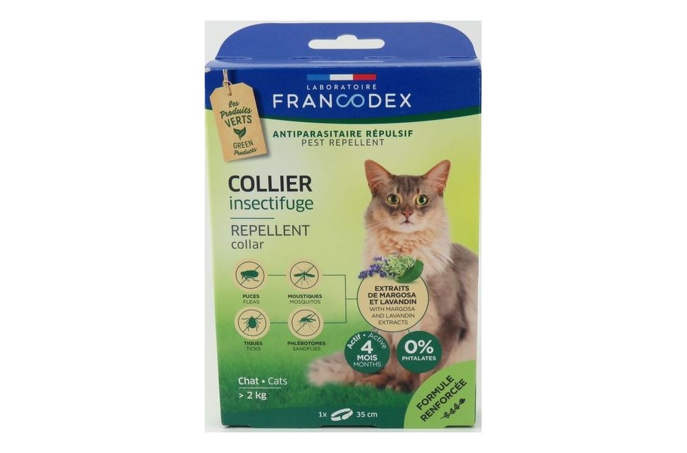 Collier pour chats de plus de 2 kg aux extraits de margosa et lavandin contre les parasites pour 4 mois de protection