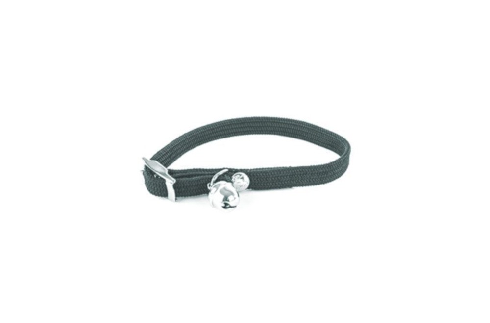 Collier en nylon tubulaire élastiqué, réglable, fourni avec 1 grelot, de largeur 1 cm pour une longeur de 30 cm