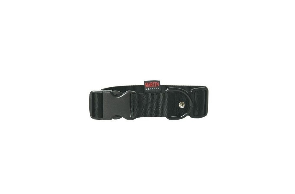 Collier réglable en nylon uni, boucle rapide et accessoire en plastique acétal connu pour sa grande résistance à la traction. Anneau laqué noir. Haute résistance du collier jusqu'à 152 kg