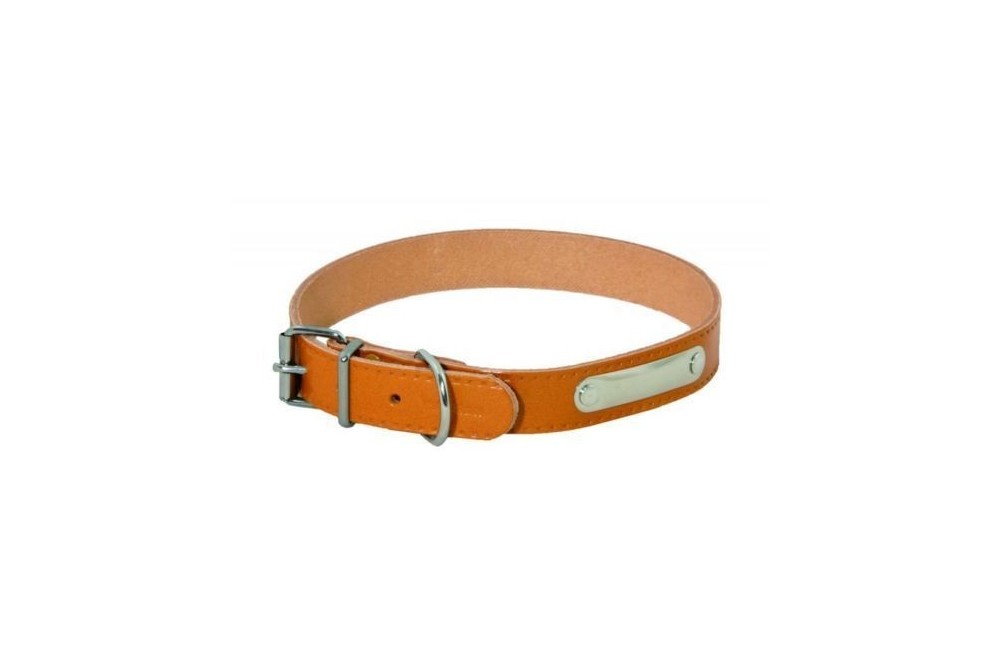 Collier riveté pour chien en cuir de couleur naturel, plaque métal d'identification rivetée de largeur 3 cm et 65 cm de longueur