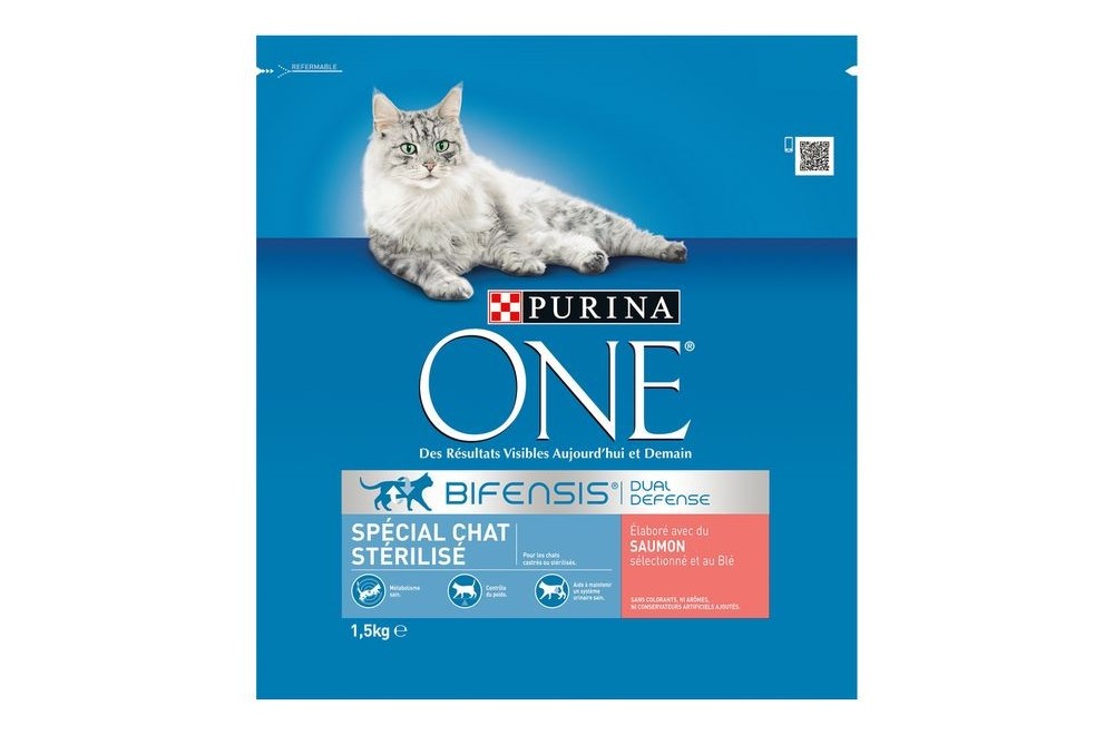 Croquettes chat stérilisé ONE 1,5 kg - Saumon et blé