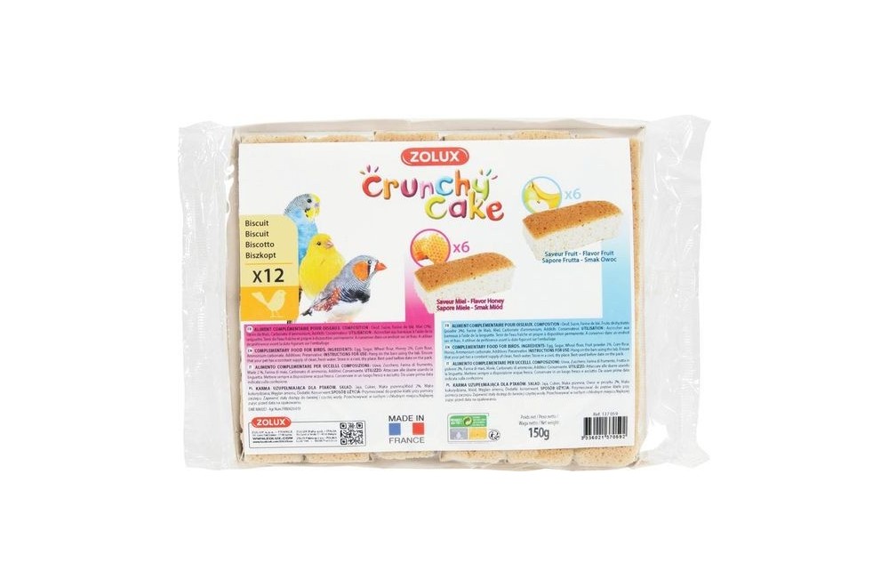Nouvelle gamme de biscuits gourmands pour oiseaux. Idéals à picorer pour faire le plein de goût et nettoyer le bec. Additifs naturels. Comprends 6 biscuits saveurs miel et 6 biscuits saveurs fruits (Pomme/Banane) Sans colorants et sans arômes artificiels. Composition biscuit saveur miel : Œuf, sucre, miel (2%), farine de maïs, carbonate d'ammonium, additifs: conservateur. Composition Analytique : Protéine brute 9. 39%; Matières grasses 4%; Cendre brute 1. 2%; Cellulose 1. 10%; Humidité 6. 7%. Composition biscuit saveur fruit pomme banane : Œuf, sucre,farine de blé, fruits déshydratés (poudre 2%), farine de maïs, miel, carbonate d'ammonium, additifs: conservateur. Composition Analytique : Protéine brute 9. 01%; Matières grasses 4. 7%; Cendre brute 1. 4%; Cellulose 0. 8%; Humidité 8. 4%.