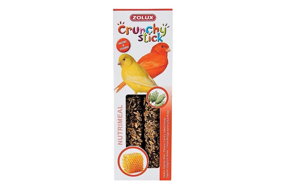Fabriquées à partir d'ingrédients naturels et vitaminiques, les baguettes Crunchy Sticks ont été spécialement conçues pour l'alimentation complémentaire des oiseaux domestiques. Elaborées selon des recettes destinées à combler les besoins spécifiques de chaque espèce, elles sont enrichies de 2 ingrédients "plaisir". Saines, elles sont garanties sans colorants, sans conservateurs et sans sucres ajoutés, et favorisent naturellement l'entretien du bec. Elles sont envelopppées dans un sachet fraîcheur qui préserve leur qualité tout en les protégeant des insectes. Chaque pack contient deux baguettes équipées d'un crochet en plastique pour être facilement suspendues à la cage de l'animal. Composition : Céréales ( dont Alpiste 33,49% ), Plantes aromatiques, Sucres ( Miel 3,62% ), Graines ou fruits oléagineux, Additifs ( Vitamines et pro vitamines : Vit B1 (0,8mg/kg), Vit B2 (3mg/kg), Vit B6 (1,5mg/kg), Vit C ( 20mg/kg), Vit K3 (1,5mg/kg ), Additifs sensoriels : substance aromatique (curcuma 0,01g/kg))