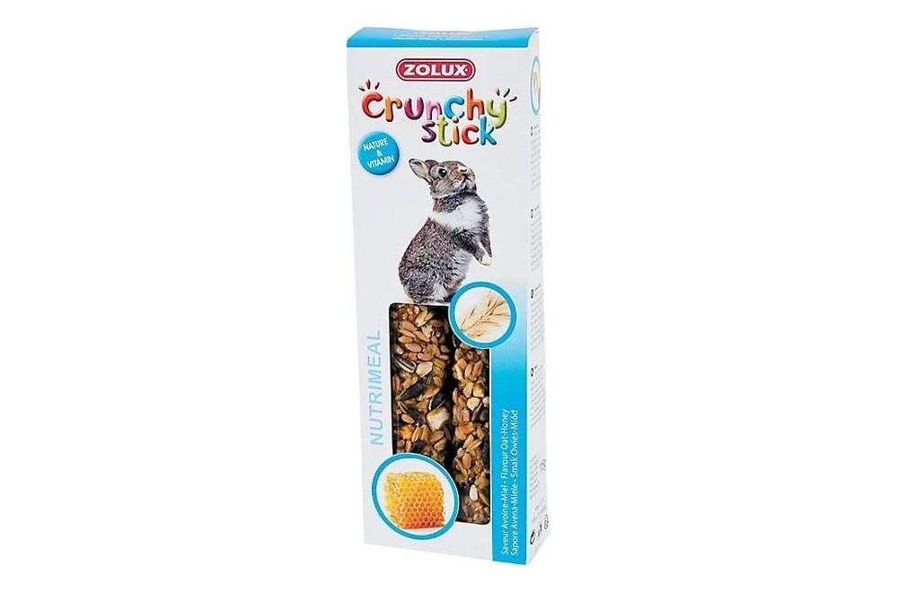 Fabriquées à partir d'ingrédients naturels et vitaminiques, les baguettes Crunchy Sticks ont été spécialement conçues pour l'alimentation complémentaire des petits mammifères. Elaborées selon des recettes destinées à combler les besoins spécifiques de chaque espèce, elles sont enrichies de 2 ingrédients "plaisir". Saines, elles sont garanties sans colorants, sans conservateurs et sans sucres ajoutés, et favorisent naturellement la régulation de la pousse dentaire. Elles sont envelopppées dans un sachet fraîcheur qui préserve leur qualité tout en les protégeant des insectes. Chaque pack contient deux baguettes équipées d'un crochet en plastique pour être facilement suspendues à la cage de l'animal. Composition : Céréales ( dont Avoine décortiqué 7,65% ), Graines ou fruits oléagineux, Sucres ( Miel 3,29% ), Additifs ( Vitamines et pro vitamines : Vit B1 (0,8mg/kg), Vit B2 (3mg/kg), Vit B6 (1,5mg/kg), Vit C ( 20mg/kg), Vit K3 (1,5mg/kg ), Additifs sensoriels : substance aromatique (curcuma 0,01g/kg))