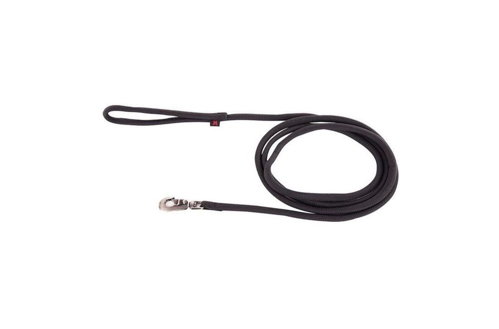 Laisse ronde en nylon ultra-résistant de 2 mètre de longueur et de diamètre 1,3 cm, replié pour former la poignée à une extrémité, et dont l'autre côté comporte une attache rapide et pratique de type mousqueton, en métal chromé