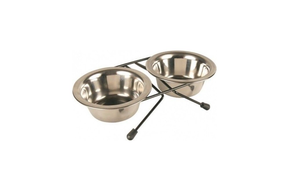 2 gamelles amovibles en acier inoxydable avec support métal pieds en caoutchouc anti-dérapants