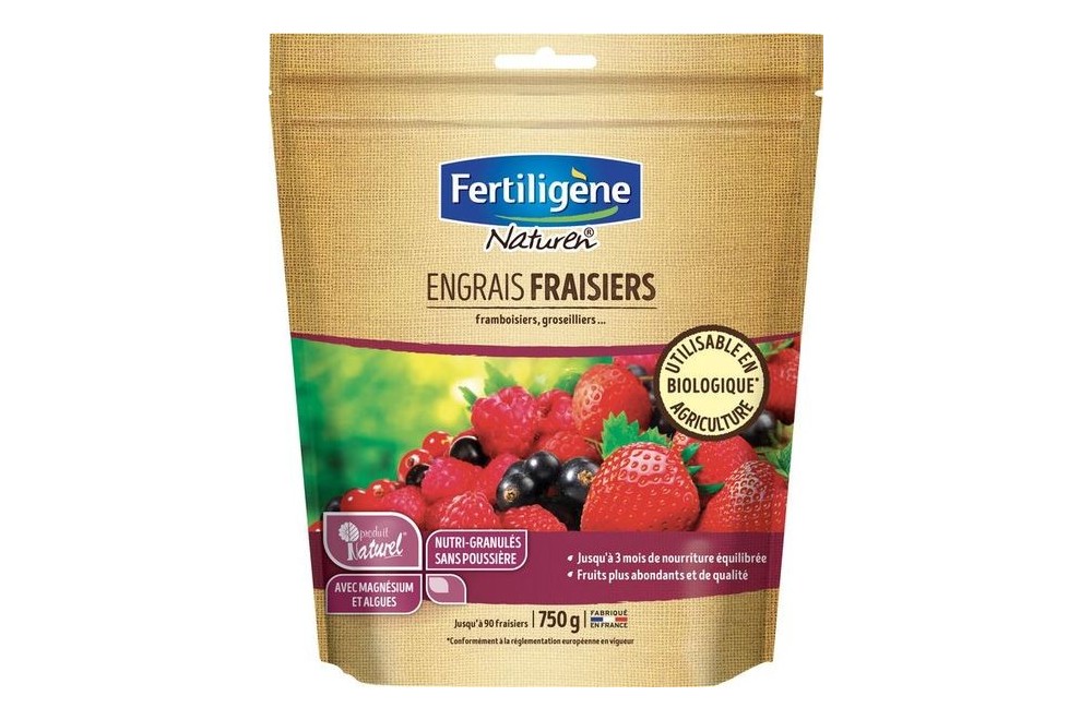 Naturen engrais fraisiers 750g, Engrais idéal pour tous les plants de fraisiers et arbustes à petits fruits : framboisiers, groseilliers, cassissiers, mûriers...