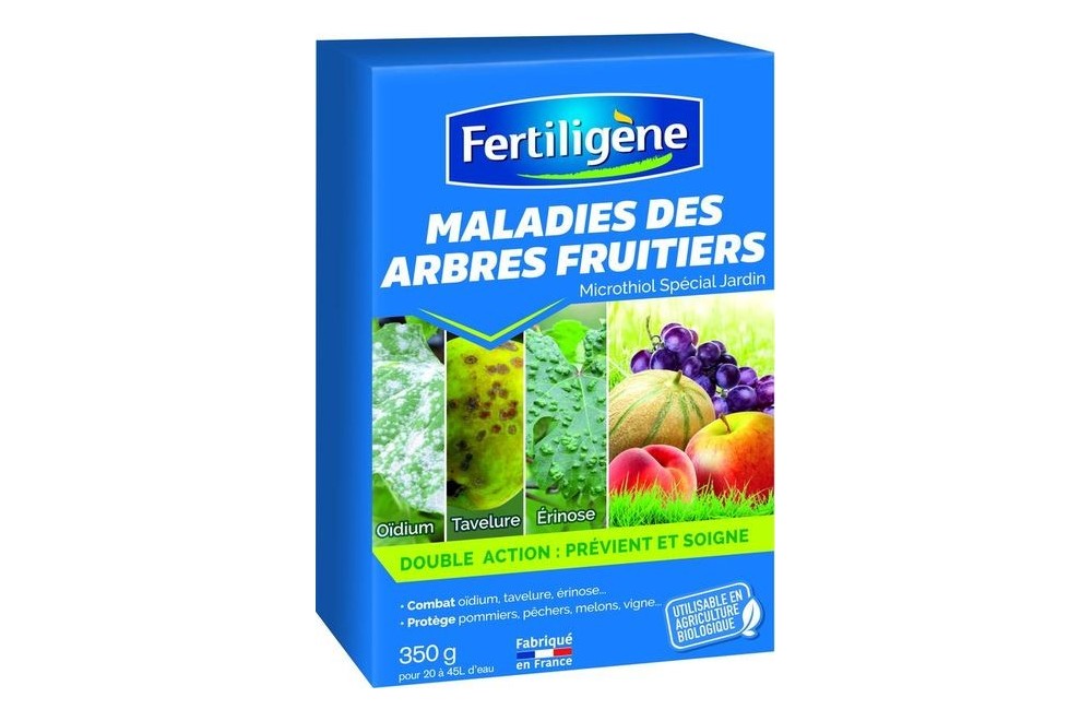 Prévient et soigne les maladies fréquentes des arbres fruitiers : Oïdium, Tavelure, Erinose…