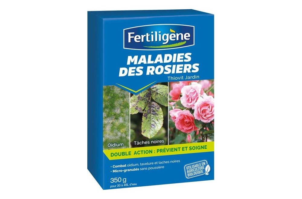 Prévient et soigne les maladies fréquentes des rosiers : Oïdium, Taches noires…